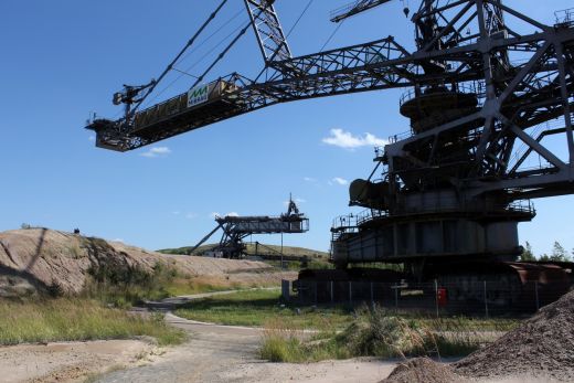 Die größten und gewaltigsten Maschinen in der Ausstellung kommen aus dem ehemaligen Tagebau Espenhain. Ein Schaufelradbagger und ein Absetzer sind die Highlights und ein beliebtes Fotomotiv.