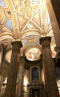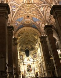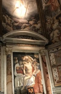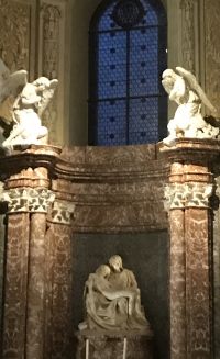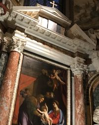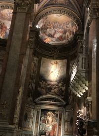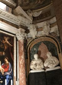 Santa Maria dell'Anima ist die Kirche der deutschsprachigen Katholiken in Rom. Das besondere Merkmal des Baus ist der schlanke Campanile, der oberhalb des Kirchengebäudes zweieinhalbgeschossig in die Höhe ragt. Das Hochaltarbild wurde von Giulio Romano in den Jahren 1521-22 geschaffen und entstand im Auftrag von Jakob Fugger ursprünglich zur Ausstattung der Fugger-Kapelle. In der Kirche gibt es das Grabdenkmal Papst Hadrians VI. 1459 in Utrecht geboren, galt Papst Hadrian VI bis zur Wahl Johannes Pauls II al der letzte Nichtitaliener auf dem Stuhle Petri. Er war nach damaligegen Begriffen ein Deutscher.
