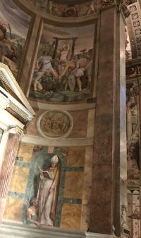 Die Kirche enthält neben einer Fülle von Grabmälern und Gedenktafeln Fresken von Giovanni Francesco Grimaldi, Altarbilder von Carlo Saraceni, Francesco Salviati und Giulio Romano und Skulpturen von François Duquesnoy.
