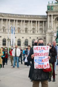 ahlreiche Besucher kamen gestern zum Helden Platz, um in der Coronakrise ein Zeichen für Kunst und Kultur zu setzen. Kunst ist auch Arbeit. Viele fordern eine Soforthilfe sowie bedinungslosses Grundeinkommen während der Krise, um so die Existenzen vieler Kunst und Kulturschaffenden zu sichern. So auch der Veranstalter der Demo.