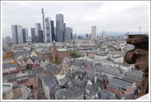 Frankfurt am Main, fünftgrößte Stadt in Hessen. Einen Panoramablick über die Stadt Frankfurt bietet die Aussichtsplattform des Doms. Der beste Blick auf Frankfurt vom 600 Jahre alten Domturm. Mit seinem 95 Meter hohen Turm ragt er über die Frankfurter Innenstadt. Einen besonderen Blick hat man von hier auf die neue Frankfurter Altstadt.