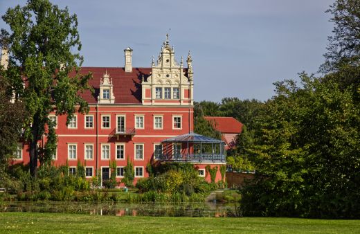 1815 legte Fürst Pückler-Muskau seinen wunderschönen Landschaftspark in der Oberlausitz an. Ein drittel des 830 Hektar großen Parks mit dem Neuen Schloss befindet sich in der Stadt Bad Muskau. Der größere Teil der Parkanlage befindet sich östlich der Neiße und nördlich der Stadt Leknica auf polnischer Seite.