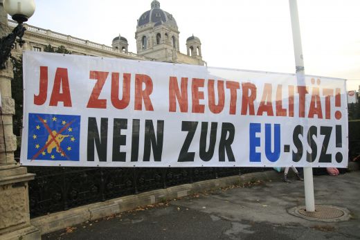 Die Solidarwerkstatt Österreich lud heute den 26. Oktober zur Kundgebung anlässlich des 65. Jahrestags der immerwährenden Neutralität. Unter dem Motto: "Neutralität verbindet - Militärblöcke spalten, kamen zahlreiche Besucher zum Maria Theresien Denkmal. Ebenfalls vor Ort divedrse Redner zum Thema Neutralität.