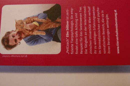 Katzen fungieren als Seelentröster und in manchen Situationen spenden sie uns therapeutische Kraft und sie machen uns glücklich. Dies beweist auch Elke Söllner (ausgebildete Tierpsychologin), in ihrem neuen Buch "Die heilende Kraft der Katzen", das sie heute in der Thalia Buchhandlung in der Mariahilferstrasse präsentierte. Sie hat sich in ihrer Arbeit, vor allem auf Katzen spezialisiert und bietet Beratung für Katzenbesitzer an. Sie weiß wie man mit den geliebten Samtpfötchen umgeht und von ihnen profitiert. Die besorgte Katze, ist ein weiteres Buch von Elke Söllner das bereits im Goldegg Verlag erschienen ist.