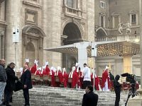 Trauermesse für den emeritierten Papst Benedikt XVI. Die Messe wurde von Papst Franziskus geleitet und mit dem Eingangsantiphon „Requiem aeternam“ eröffnet. Etwa einhundertdreißig Kardinäle anwesend. Von den offiziell in Rom anwesenden ausländischen Delegationen waren nur die Delegationen Deutschlands und Italiens eingeladen.